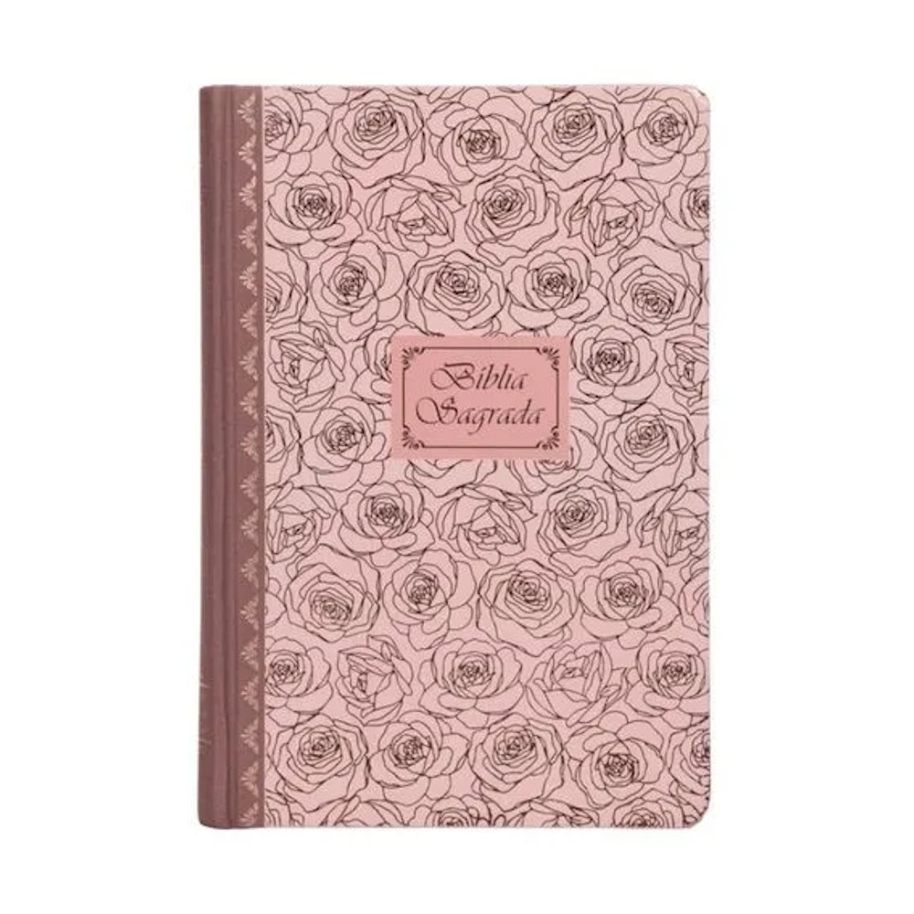 Bíblia Sagrada Católica, Letra Grande, Rosas, Capa Dura Com Lombada Em Tecido