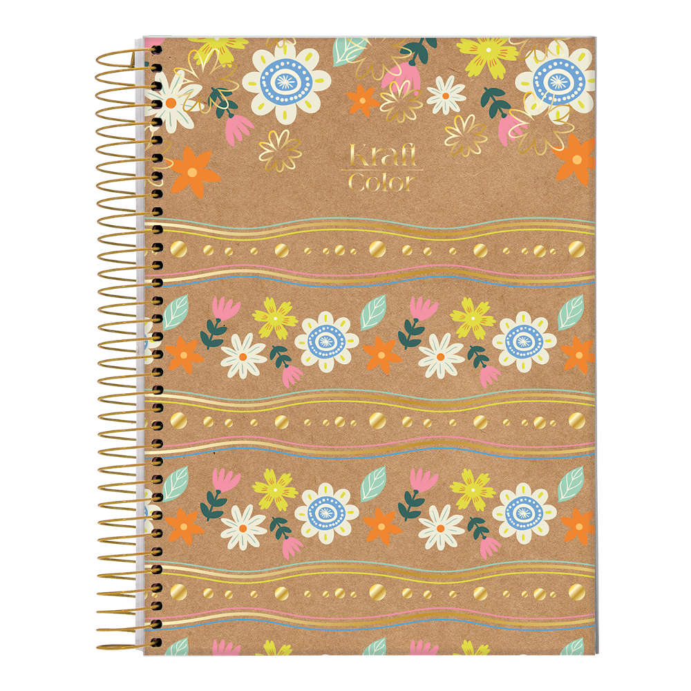 Caderno Espiral Universitário Grande Capa Dura 160 Folhas 10 Matérias Kraft Color – Estampas Sortida