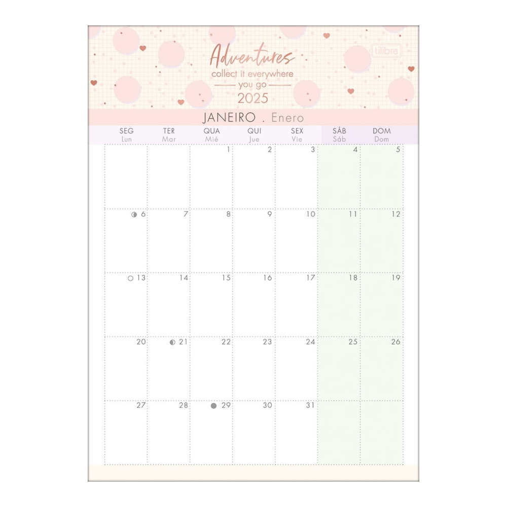 O Calendário Planner possui planejamento mensal e espaço para anotações para organizar os compromissos em casa, no trabalho e na escola.