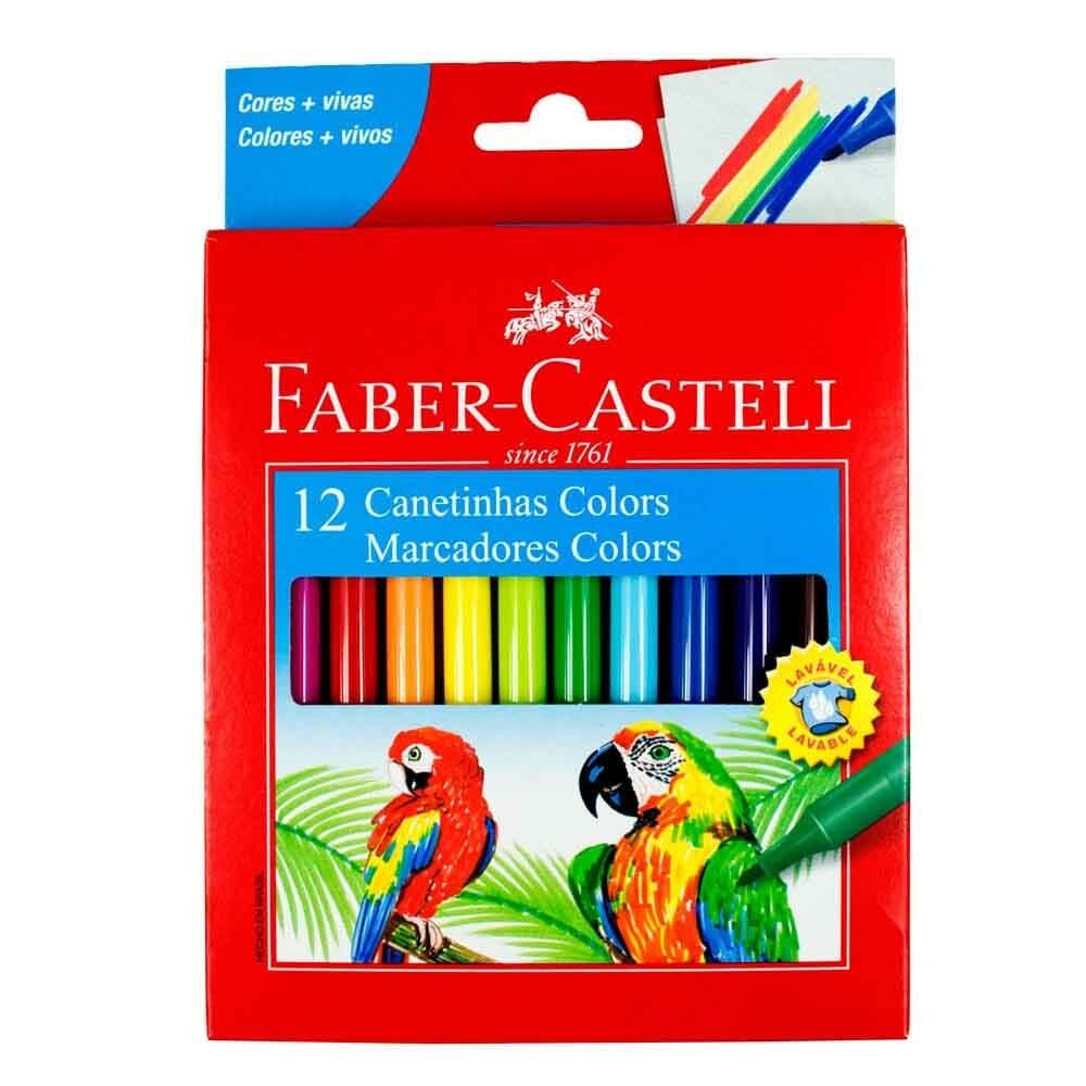 CANETA HIDROGRÁFICA COLORS COM 12 CORES – ESTOJO CARTÃO – Faber Castell