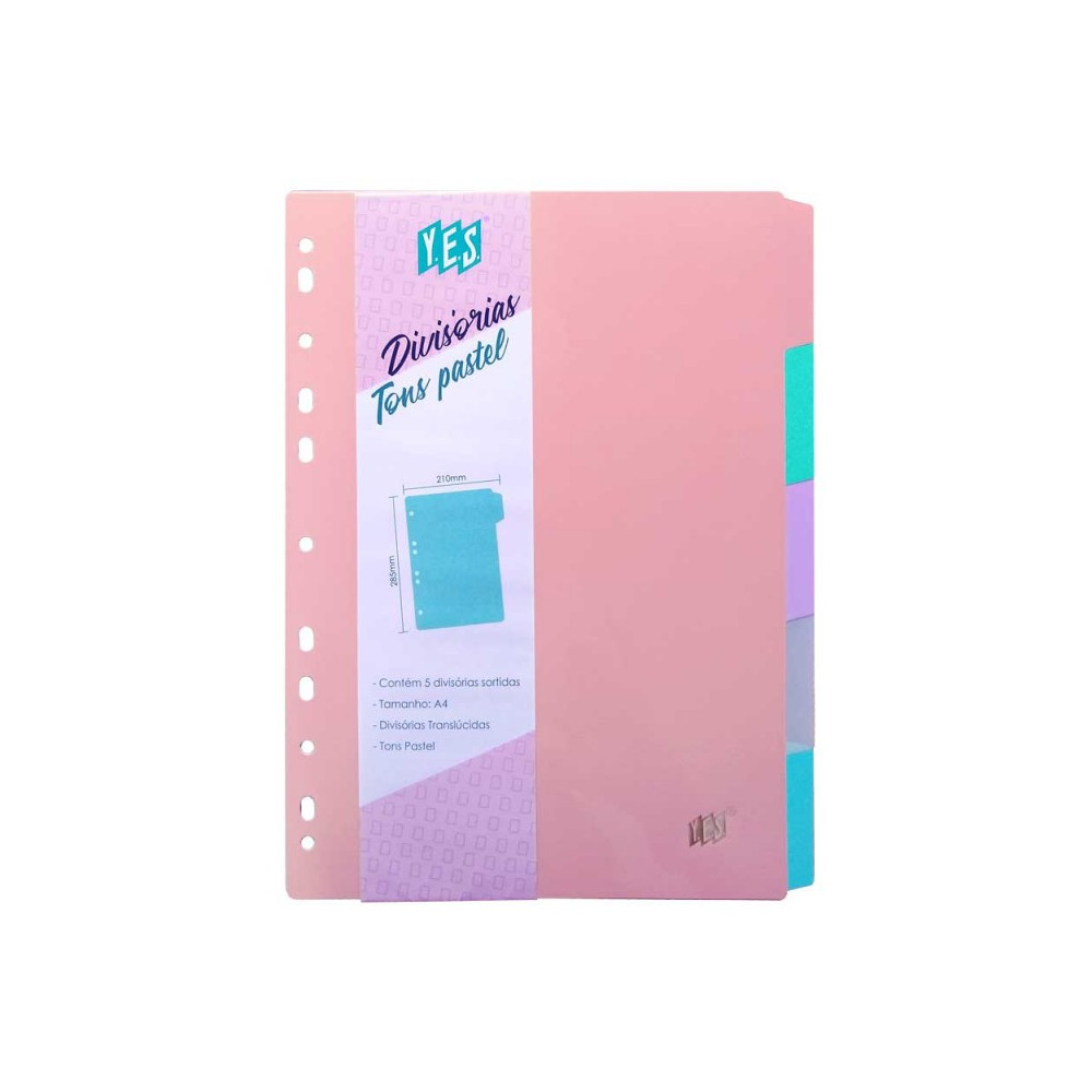 Divisórias YES fichário cores pastéis.