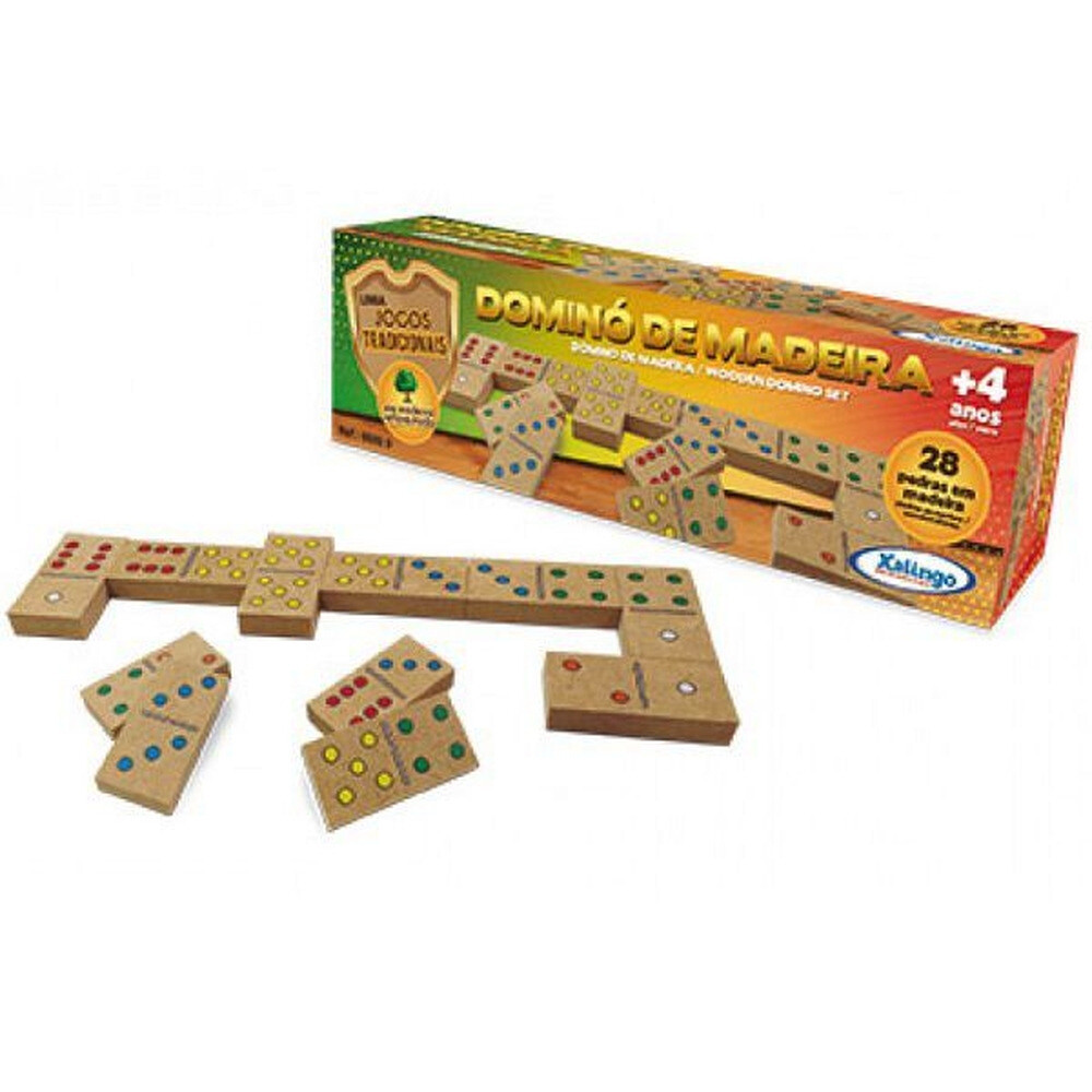 DOMINÓ DE MADEIRA – COM 28 PEÇAS – Xalingo