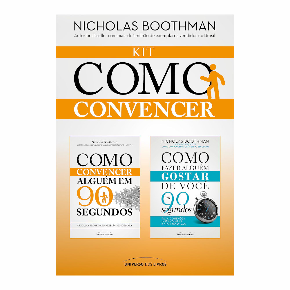 Kit composto pelos livros “”Como convencer alguém em 90 segundos”” e “”Como fazer alguém gostar de você em 90 segundos”” do renomado autor Nicholas Boothman, especialista mundialmente conhecido em transformar primeiras impressões em relacionamentos duradouros.Livro 01 – Como convencer alguém em 90 segundosComo convencer alguém em 90 segundos é a garantia de uma comunicação de sucesso, transformando as conexões instantâneas em duradouras e produtivas relações de negócios.
