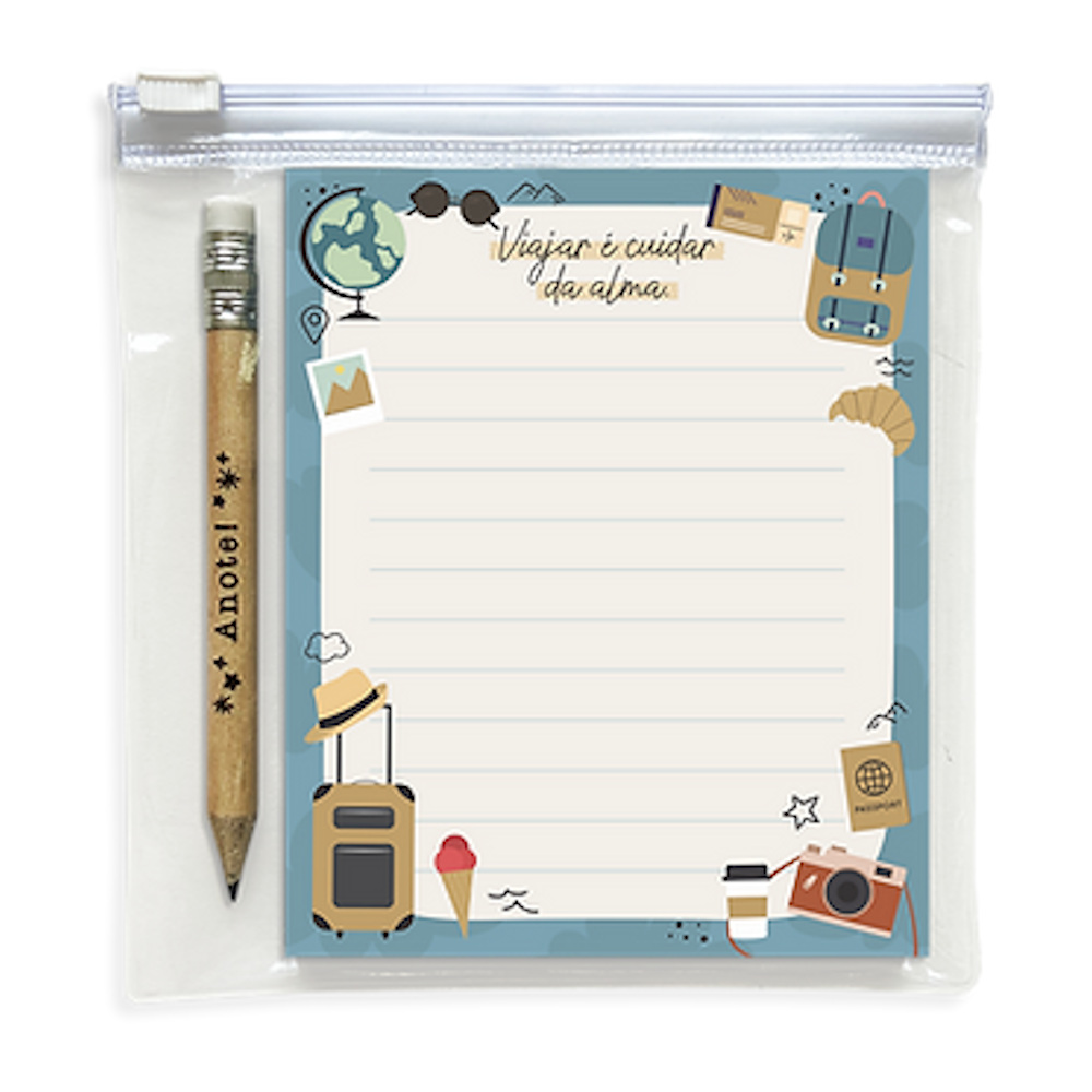Kit Note – Bloquinho + Mini Lápis + Case: Viagem