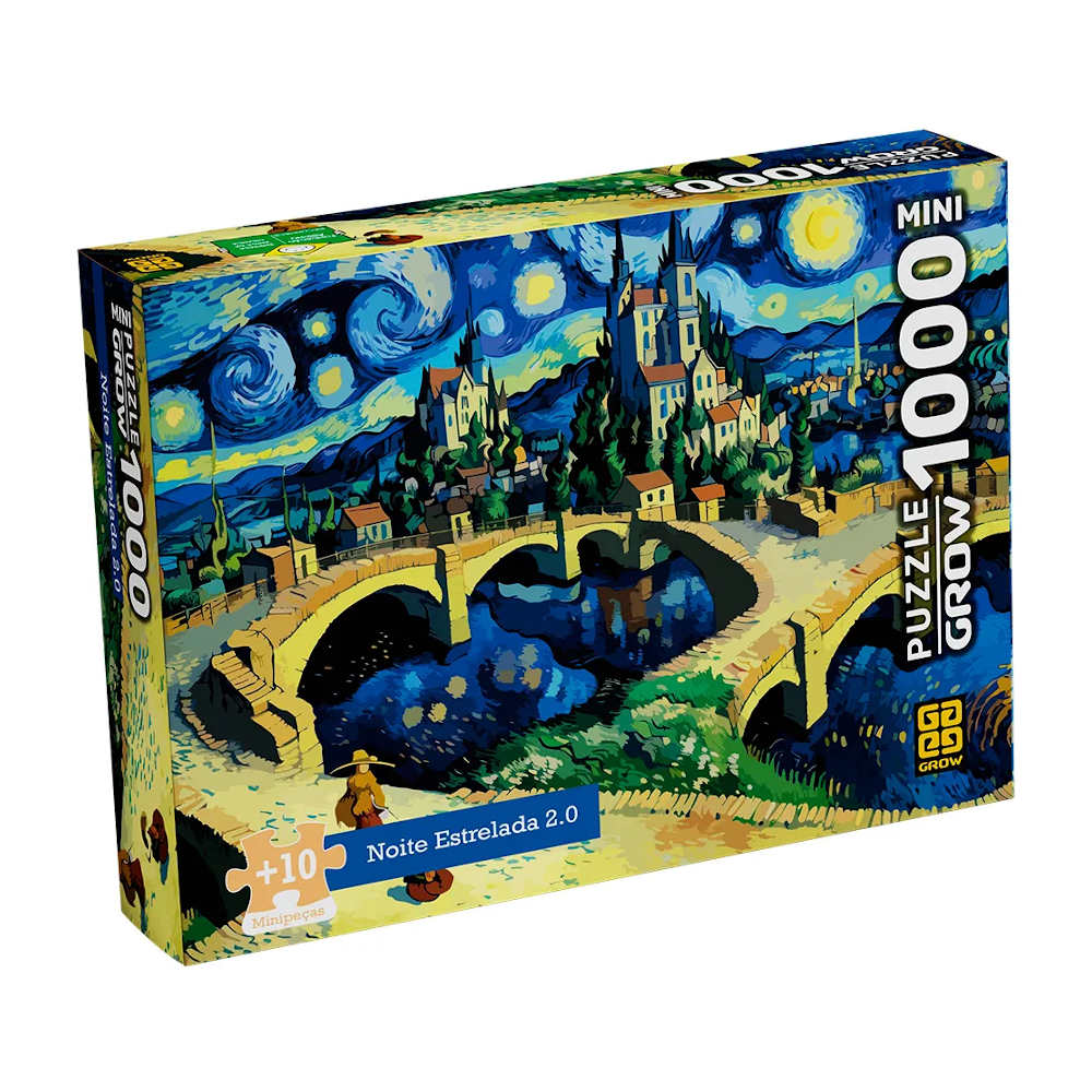 Este mini quebra-cabeça apresenta a releitura da obra “Noite Estrelada”, uma reinterpretação do famoso quadro de Van Gogh. A ilustração captura a essência de uma noite estrelada e vibrante, características que definem o estilo inconfundível de Van Gogh. Ao montar este quebra-cabeça, você pode apreciar os detalhes deslumbrantes inspirados na obra-prima de Van Gogh.
