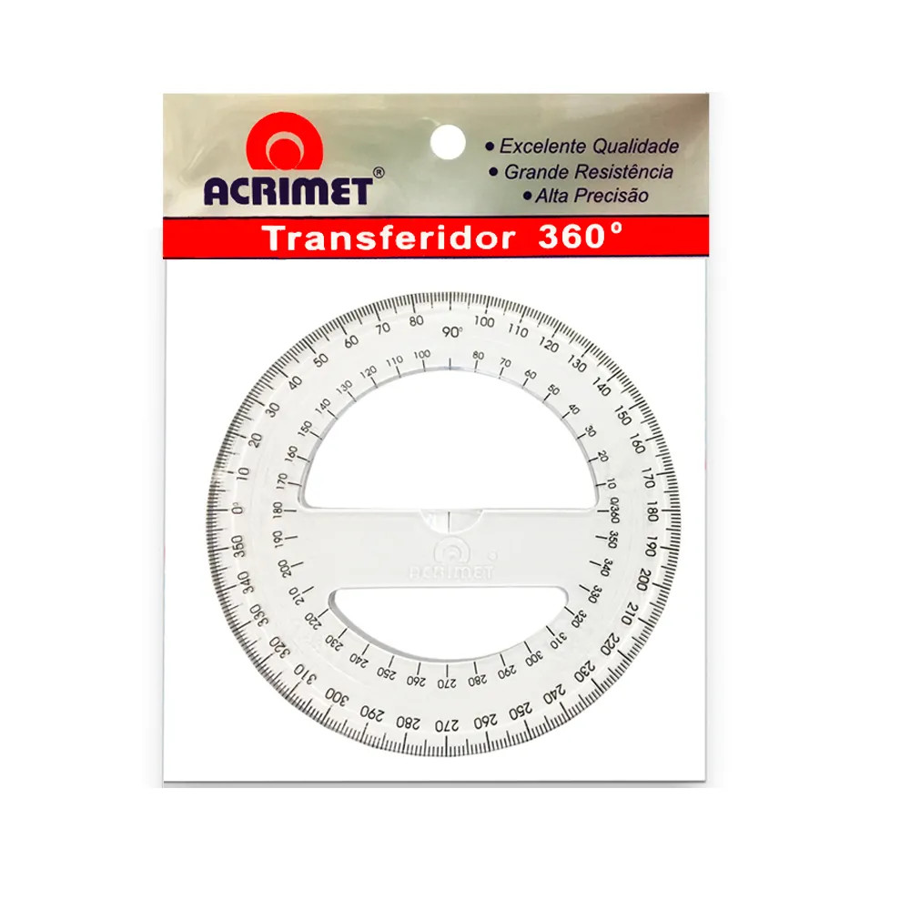 – Transferidor em poliestireno, com escala gravada por transferência de imagem, garantindo alta precisão.